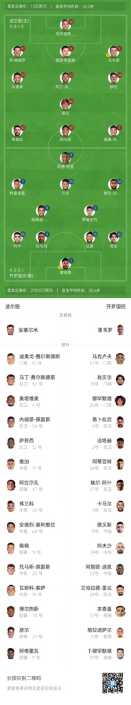 波尔图首发:14-克劳迪奥-拉莫斯、5-马卡诺、23-马里奥、74-穆拉、97-泽-佩德罗、6-欧斯塔基奥、10-维埃拉、22-阿兰-瓦雷拉、86-莫拉、7-威廉-戈麦斯、19-纳马索