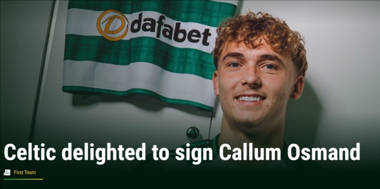 凯尔特人官方写道:“俱乐部欣然宣布,签下备受看好的前锋卡勒姆-奥斯曼。这位19岁的前锋从富勒姆加盟,签约四年,转会尚需获得国际转会许可。”