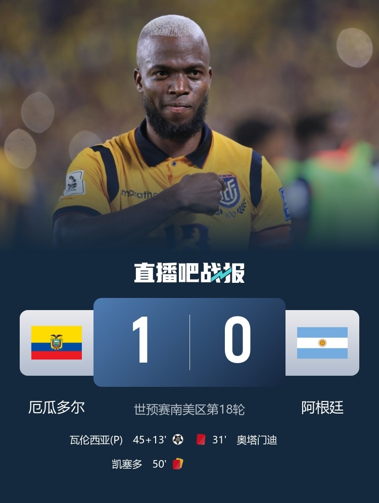 9月10日讯 世预赛南美区第18轮,十人阿根廷客场0-1不敌十人厄瓜多尔。据阿根廷媒体TyC报道,因为本场失利阿根廷将在最新一期世界排名丢掉世界第一的位置。